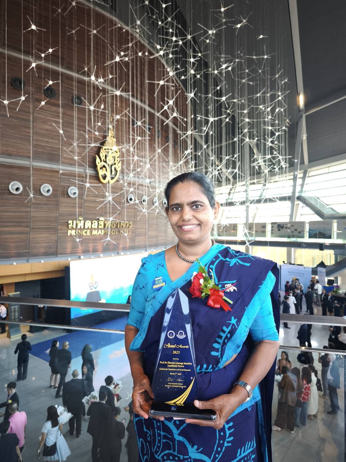 วันที่ 2 มีนาคม 2568 เวลา 16.00 น. รศ.ดร.เฉลิมพล แจ่มจันทร์ ผู้อำนวยการสถาบันวิจัยประชากรและสังคม พร้อมด้วย รศ.ดร.ศุทธิดา ชวนวัน รองผู้อำนวยการฝ่ายบริหารงานทั่วไป รศ.ดร.จงจิตต์ ฤทธิรงค์ รองผู้อำนวยการฝ่ายวิจัย คุณพลอยชมพู สุคัสถิตย์ เลขานุการสถาบันฯ และคณะ ร่วมแสดงความยินดีกับ Prof. Dr.Ellawala Liyanage Sunethra Jayathilake Perera, Professor of Demography (Chair), University of Colombo, Sri Lanka ศิษย์เก่าสถาบันฯ ปริญญาเอก หลักสูตรประชากรศาสตร์ (นานาชาติ) ได้รับรางวัลศิษย์เก่าดีเด่นมหาวิทยาลัยมหิดล ประจำปี 2568 ณ มหิดลสิทธาคาร มหาวิทยาลัยมหิดล