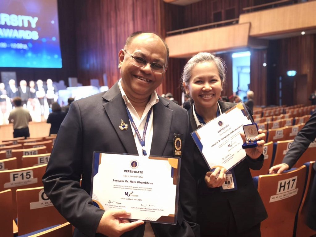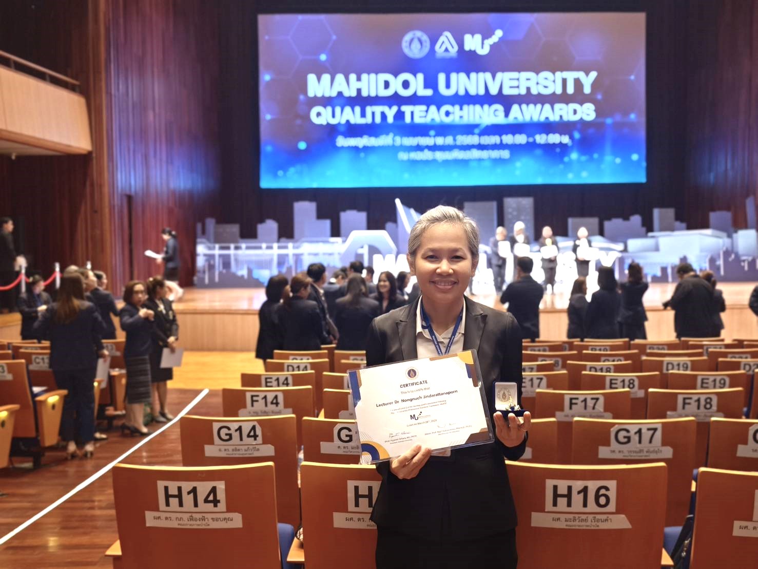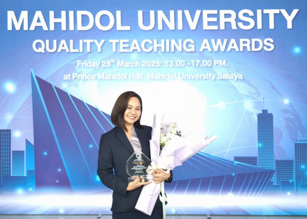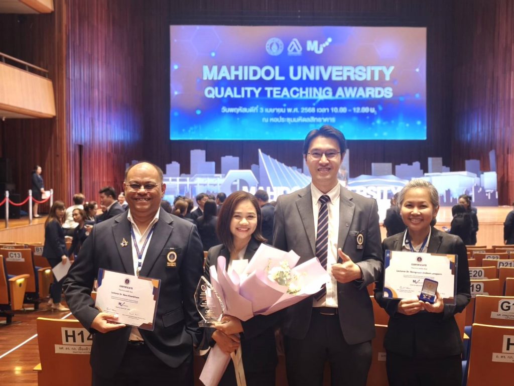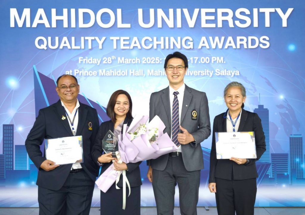 วันที่ 3 เมษายน 2568 รศ. ดร.เฉลิมพล แจ่มจันทร์ ผู้อำนวยการสถาบันวิจัยประชากรและสังคม มอบช่อดอกไม้เพื่อแสดงความยินดีกับ รศ. ดร.ศุทธิดา ชวนวัน ในโอกาสเข้ารับมอบโล่รางวัล MU’s Teaching Excellence Award 2025 พร้อมด้วย อ. ดร.นงนุช จินดารัตนาภรณ์ และ อ. ดร.นรา ขำคม ในโอกาสที่ผ่านการประเมินระดับคุณภาพการจัดการเรียนการสอนตามเกณฑ์มาตรฐานคุณภาพอาจารย์ของมหาวิทยาลัยมหิดล MUPSF ระดับ 2 ณ มหิดลสิทธาคาร มหาวิทยาลัยมหิดล