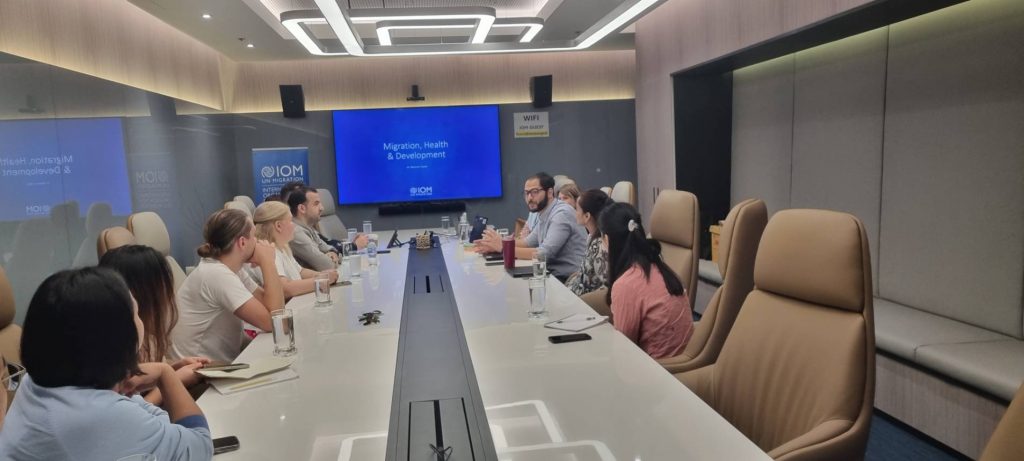 วันที่ 25 เมษายน 2568 อาจารย์ ดร. Sergey Ryazantsev นำนักศึกษาหลักสูตรศิลปศาสตรมหาบัณฑิต สาขาวิชาประชากรและสุขภาพทางเพศและอนามัยเจริญพันธุ์ (หลักสูตรนานาชาติ) และหลักสูตรปรัชญาดุษฎีบัณฑิต สาขาวิชาประชากรศาสตร์ประยุกต์และการวิจัยทางสังคม (หลักสูตรนานาชาติ) จำนวน 7 คน เข้าร่วมการศึกษาดูงานรายวิชา PRPS 644 MIGRATION AND HEALTH เขาศึกษาดูงาน ณ IOM สำนักงานประเทศไทย ชั้น 18 อาคารรัจนาการ ถนนสาทรใต้ เขตสาทร กรุงเทพฯ