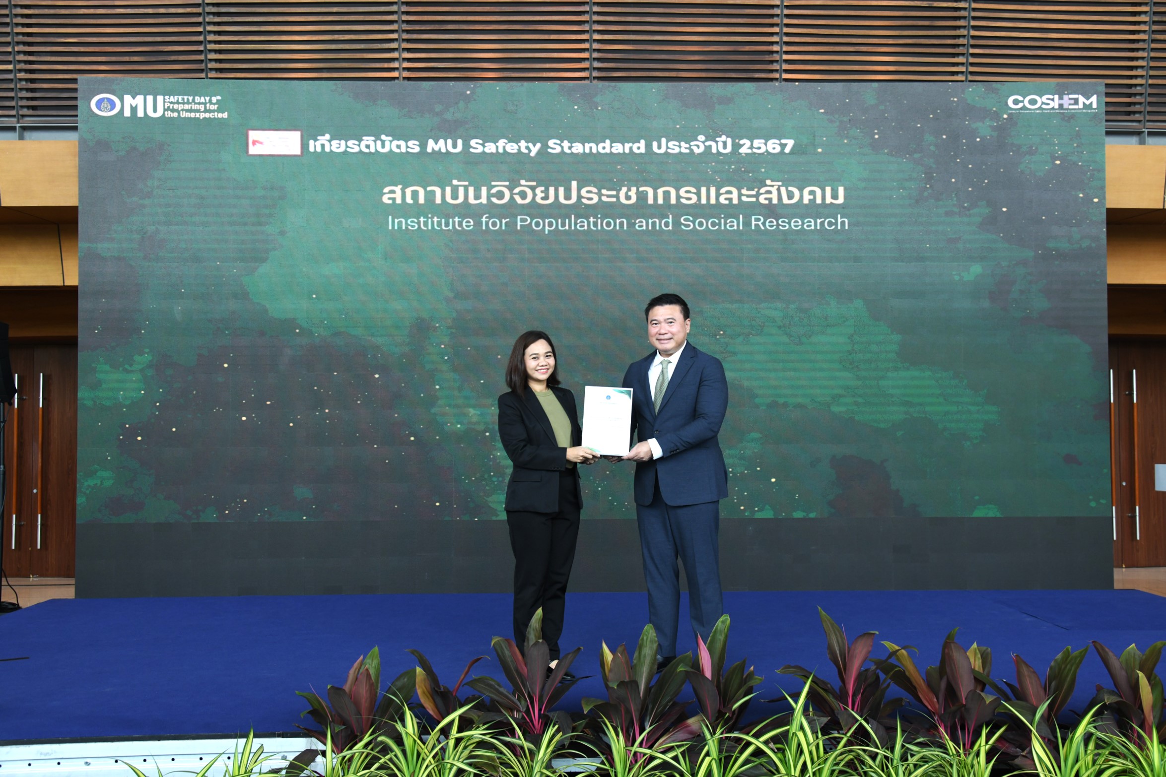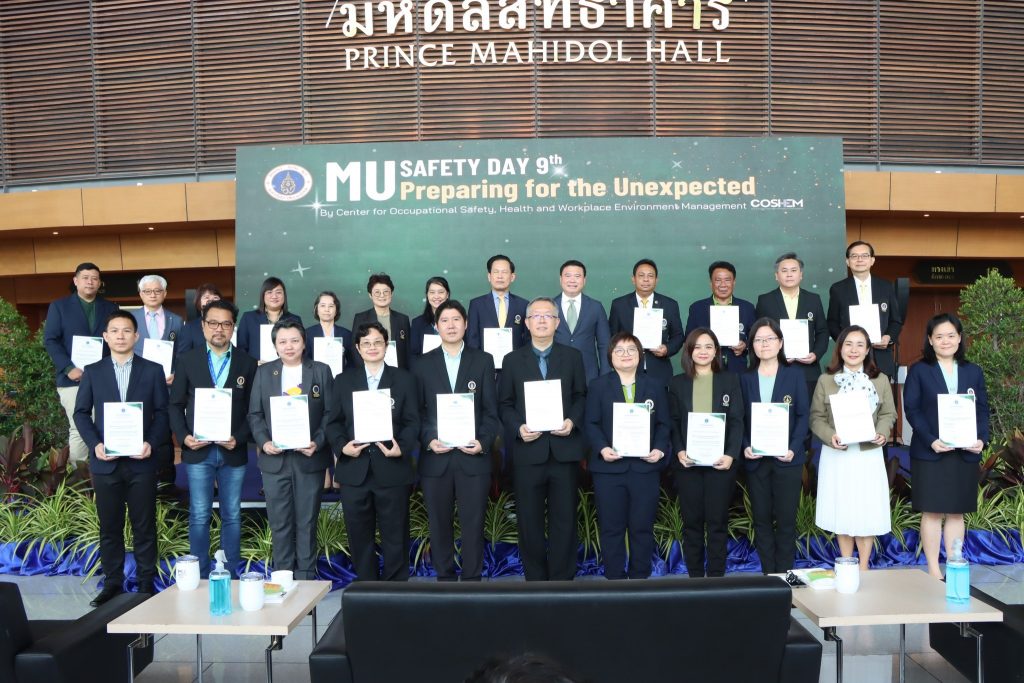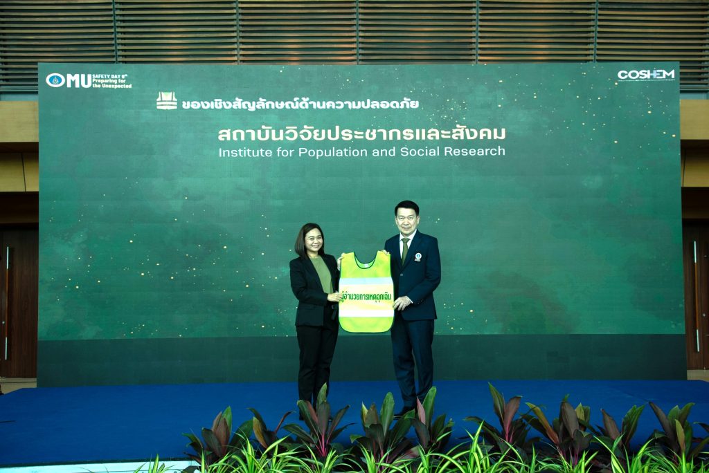 วันที่ 28 เมษายน 2568 รศ. ดร.ศุทธิดา ชวนวัน รองผู้อำนวยการฝ่ายบริหารงานทั่วไป สถาบันวิจัยประชากรและสังคม ม.มหิดล พร้อมด้วย นายสมเกียรติ เขียวแก่ หัวหน้างานกายภาพและสิ่งแวดล้อม เข้าร่วมงาน Safety Day รณรงค์อาชีวอนามัยละความปลอดภัย ครั้งที่ 9 พร้อมรับมอบของเชิงสัญลักษณ์ด้านความปลอดภัยประจำส่วนงาน ณ อาคารมหิดลสิทธาคาร มหาวิทยาลัยมหิดล