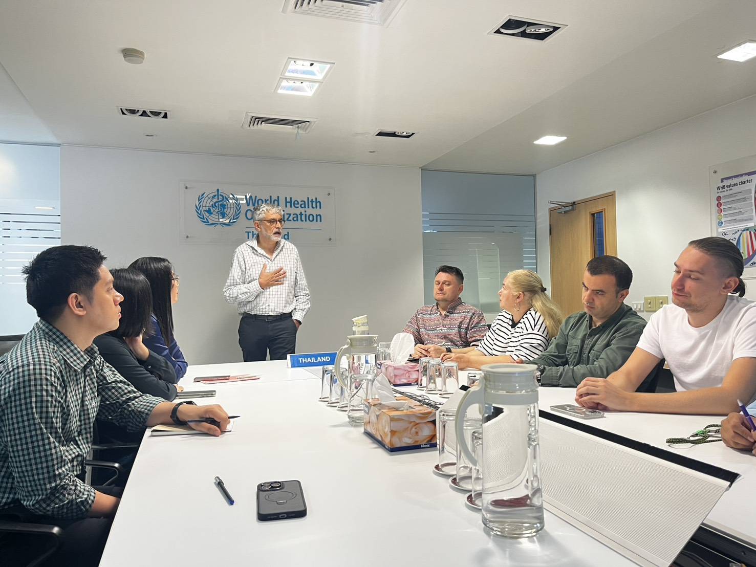 วันที่ 1 พฤษภาคม 2568 อาจารย์ ดร. Sergey Ryazantsev สถาบันวิจัยประชากรและสังคม ม.มหิดล นำนักศึกษาหลักสูตรศิลปศาสตรมหาบัณฑิต สาขาวิชาประชากรและสุขภาพทางเพศและอนามัยเจริญพันธุ์ (หลักสูตรนานาชาติ) และหลักสูตรปรัชญาดุษฎีบัณฑิต สาขาวิชาประชากรศาสตร์ประยุกต์และการวิจัยทางสังคม (หลักสูตรนานาชาติ) จำนวน 10 คน เข้าร่วมการศึกษาดูงานรายวิชา PRPS 644 MIGRATION AND HEALTH ณ World Health Organization, Country Office for Thailand (WHO) องค์การอนามัยโลกสาขาประเทศไทย เพื่อเพิ่มความรู้ความเข้าใจให้กับนักศึกษาเกี่ยวกับบทบาทของ WHO ในการแก้ไขปัญหาที่เกี่ยวข้องกับการย้ายถิ่นฐานและสุขภาพ ตลอดจนเปิดโอกาสให้นักศึกษาได้แลกเปลี่ยนทางวิชาการกับผู้เชี่ยวชาญระดับนานาชาติ