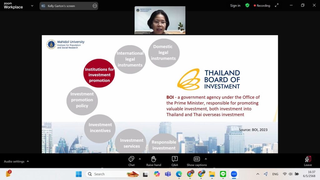 วันที่ 6 พฤษภาคม 2568 รศ. ดร.สิรินทร์ยา พูลเกิด สถาบันวิจัยประชากรและสังคม มหาวิทยาลัยมหิดล ได้เข้าร่วมบรรยายในงานสัมมนาออนไลน์ (webinar) หัวข้อ “Nutrition, Trade and Investment: Key Challenges and Opportunities”จัดโดย The Asia Pacific Clinical Nutrition Society (APCNS) เพื่อแลกเปลี่ยนมุมมองและผลการวิจัยเกี่ยวกับอิทธิพลของการค้าและการลงทุนต่อประเด็นโภชนาการ ในระดับประเทศและสากล