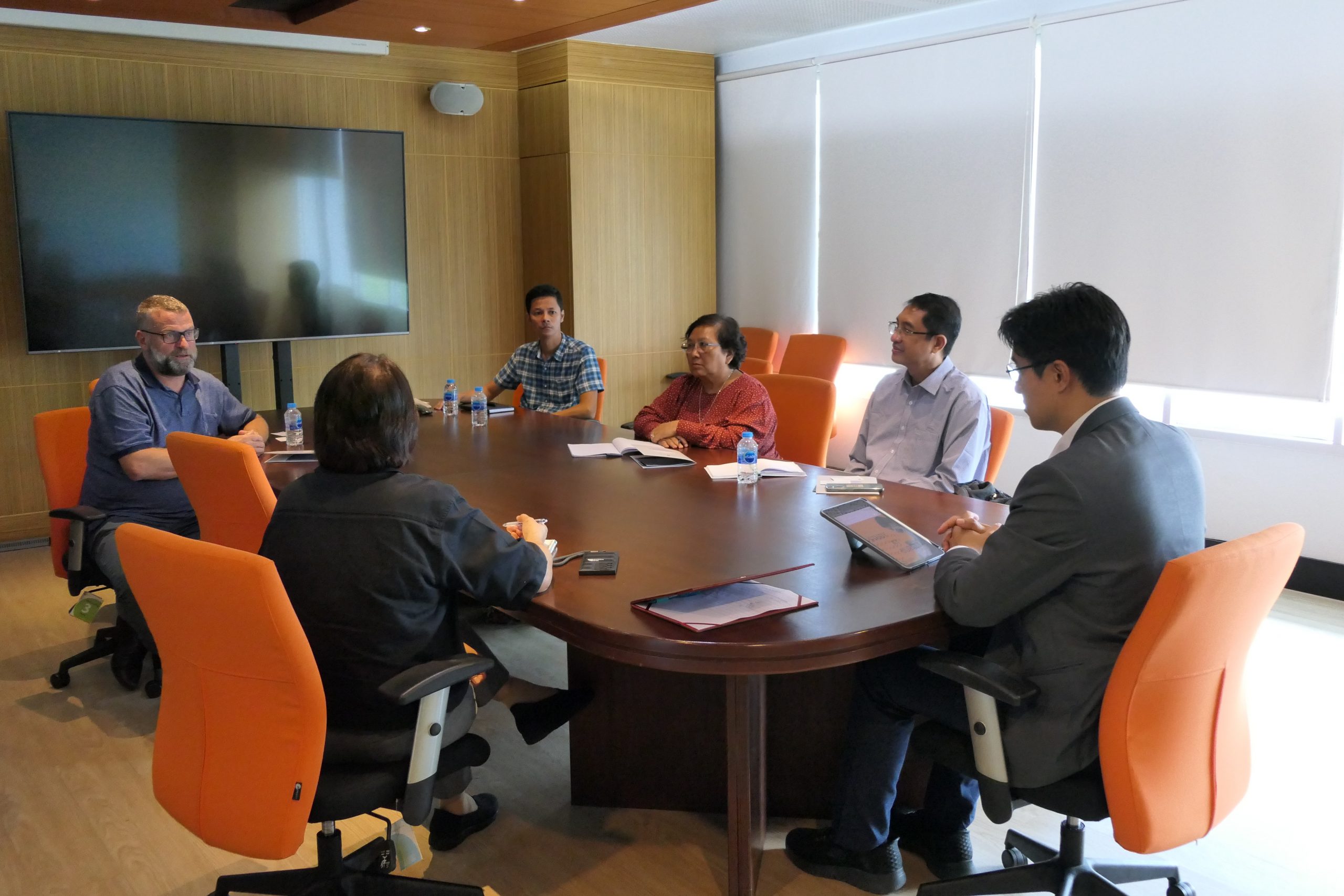 วันที่ 20 พฤษภาคม 2568 รศ. ดร.เฉลิมพล แจ่มจันทร์ ผู้อำนวยการสถาบันวิจัยประชากรและสังคม พร้อมด้วย ผศ. ดร.ดุสิตา พึ่งสำราญ รองผู้อำนวยการฝ่ายวิเทศสัมพันธ์และสื่อสารองค์กร ให้การต้อนรับคณะผู้แทนจาก Burnet Institute นำโดย Mr. Chad Hughes (Deputy Director, International Operations), Dr. Kyu Kyu Than (Research Director for Myanmar Program), Mr. Win Htike (Senior Program Manager, Health Security & Malaria) และ Mr. Phone Myint Win (Country Representative, Myanmar) ในโอกาสเยือนสถาบันฯ เพื่อร่วมหารือเชิงวิชาการเกี่ยวกับความร่วมมือด้านการศึกษาระดับปริญญาเอก ณ ห้องทานตะวัน (403) ชั้น 4 สถาบันวิจัยประชากรและสังคม ม.มหิดล
