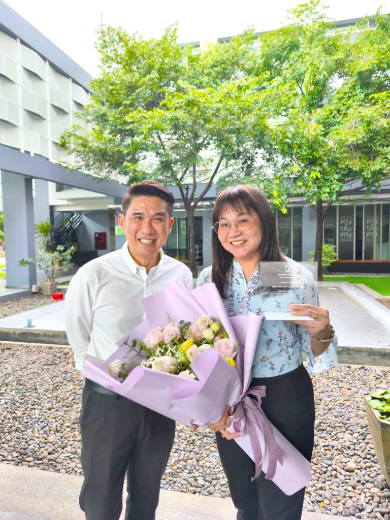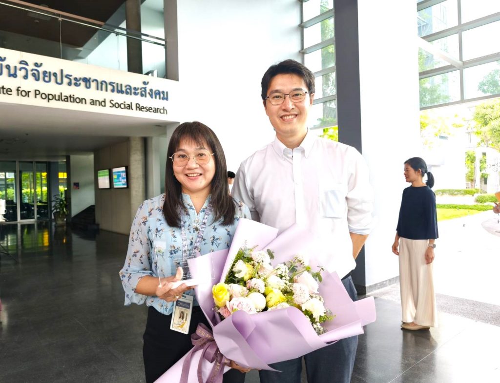 วันที่ 23 พฤษภาคม 2568 รศ. ดร.เฉลิมพล แจ่มจันทร์ ผู้อำนวยการสถาบันวิจัยประชากรและสังคม ม.มหิดล พร้อมด้วยคณาจารย์ ร่วมมอบช่อดอกไม้เพื่อแสดงความยินดีกับ ผศ. ดร.พจนา หันจางสิทธิ์ ในโอกาสได้รับคัดเลือกเป็น “ศิษย์เก่าดีเด่น” คณะสาธารณสุขศาสตร์ มหาวิทยาลัยมหิดล ประจำปี 2568 “ประเภทวิชาการ”