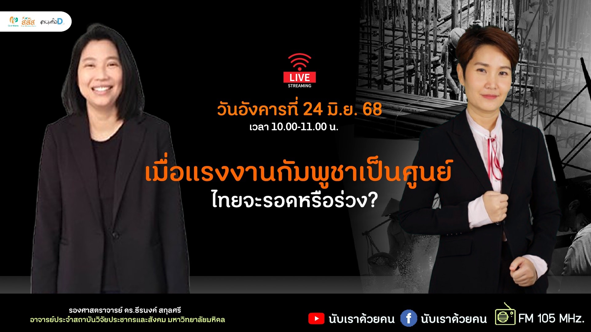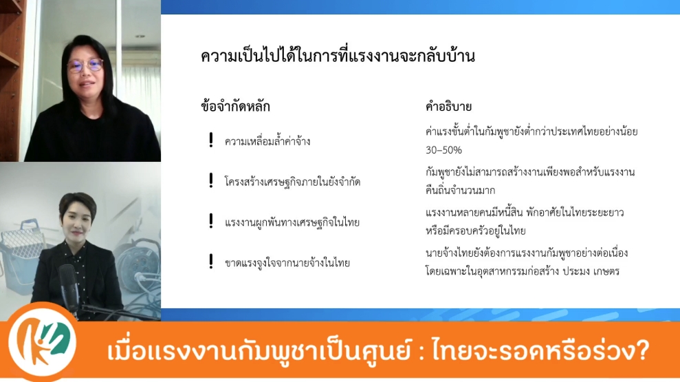 วันที่ 24 มิถุนายน 2568 รศ. ดร.ธีรนงค์ สกุลศรี สถาบันวิจัยประชากรและสังคม ม.มหิดล ร่วมพูดคุยออนไลน์ในรายการนับเราด้วยคน ตอน เมื่อแรงงานกัมพูชาเป็นศูนย์: ไทยจะรอดหรือร่วง? ซึ่งได้วิเคราะห์และสะท้อนสถานการณ์แรงงานข้ามชาติของไทยอย่างรอบด้าน สามารถรับชมย้อนหลังได้ทางเพจ นับเราด้วยคน https://www.facebook.com/share/v/18vxnasqa8/