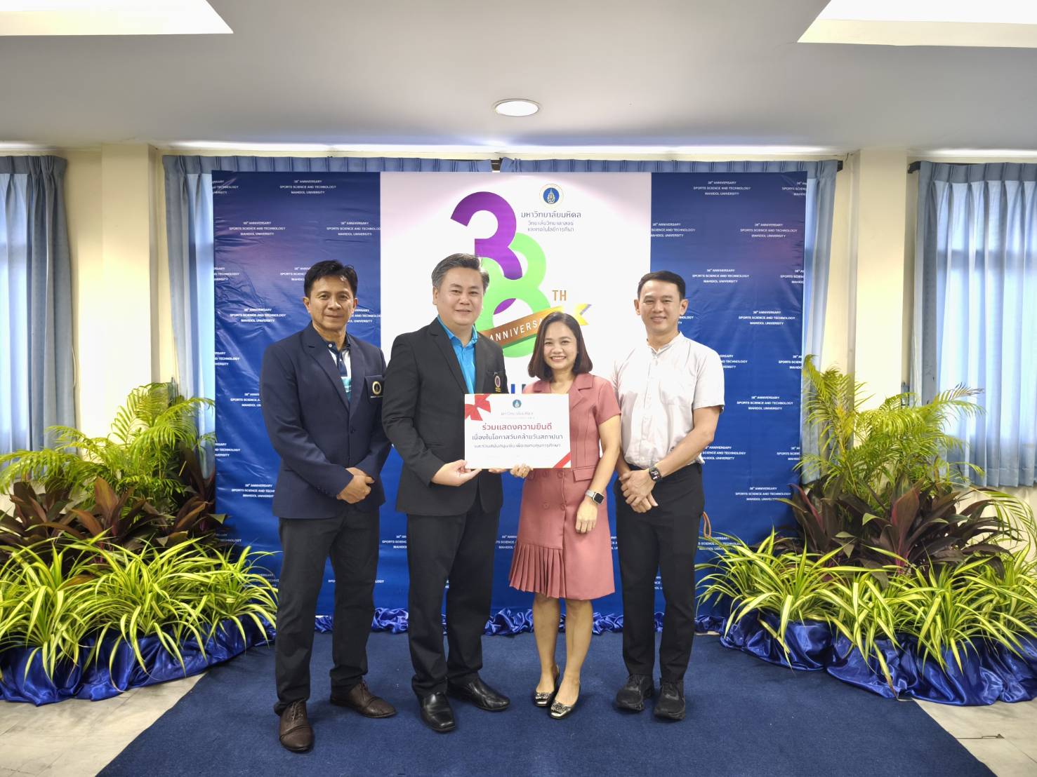 วันที่ 3 กรกฎาคม 2568 รศ. ดร.ศุทธิดา ชวนวัน รองผู้อำนวยการฝ่ายบริหารงานทั่วไป และว่าที่ร้อยตรี นิพนธ์ ดาราวุฒิมาประกรณ์ นักปฏิบัติการวิจัย (ผู้เชี่ยวชาญ) สถาบันวิจัยประชากรและสังคม ร่วมมอบทุนและแสดงความยินดีเนื่องในงานครบรอบ 38 ปี วิทยาลัยวิทยาศาสตร์และเทคโนโลยีการกีฬา โดยมี ผศ. นพ.ยุทธนา อุดมพร คณบดีวิทยาลัยวิทยาศาสตร์และเทคโนโลยีการกีฬา และ อาจารย์ ดร.ชลชัย อานามนารถ รองคณบดีฝ่ายสื่อสารองค์กร ให้การต้อนรับ ณ วิทยาลัยวิทยาศาสตร์และเทคโนโลยีการกีฬา มหาวิทยาลัยมหิดล