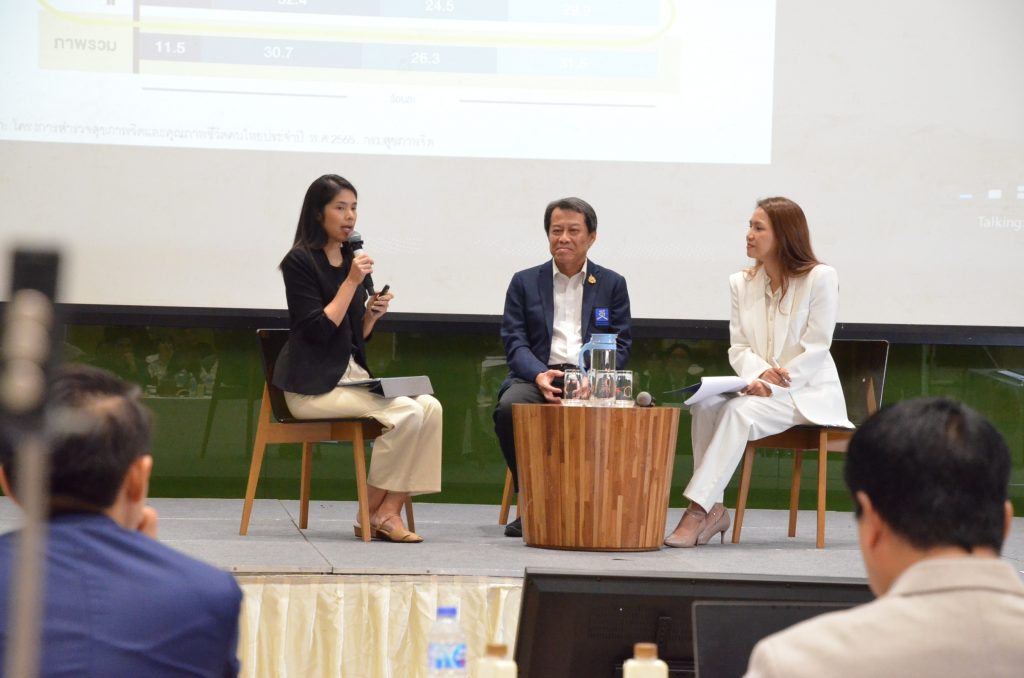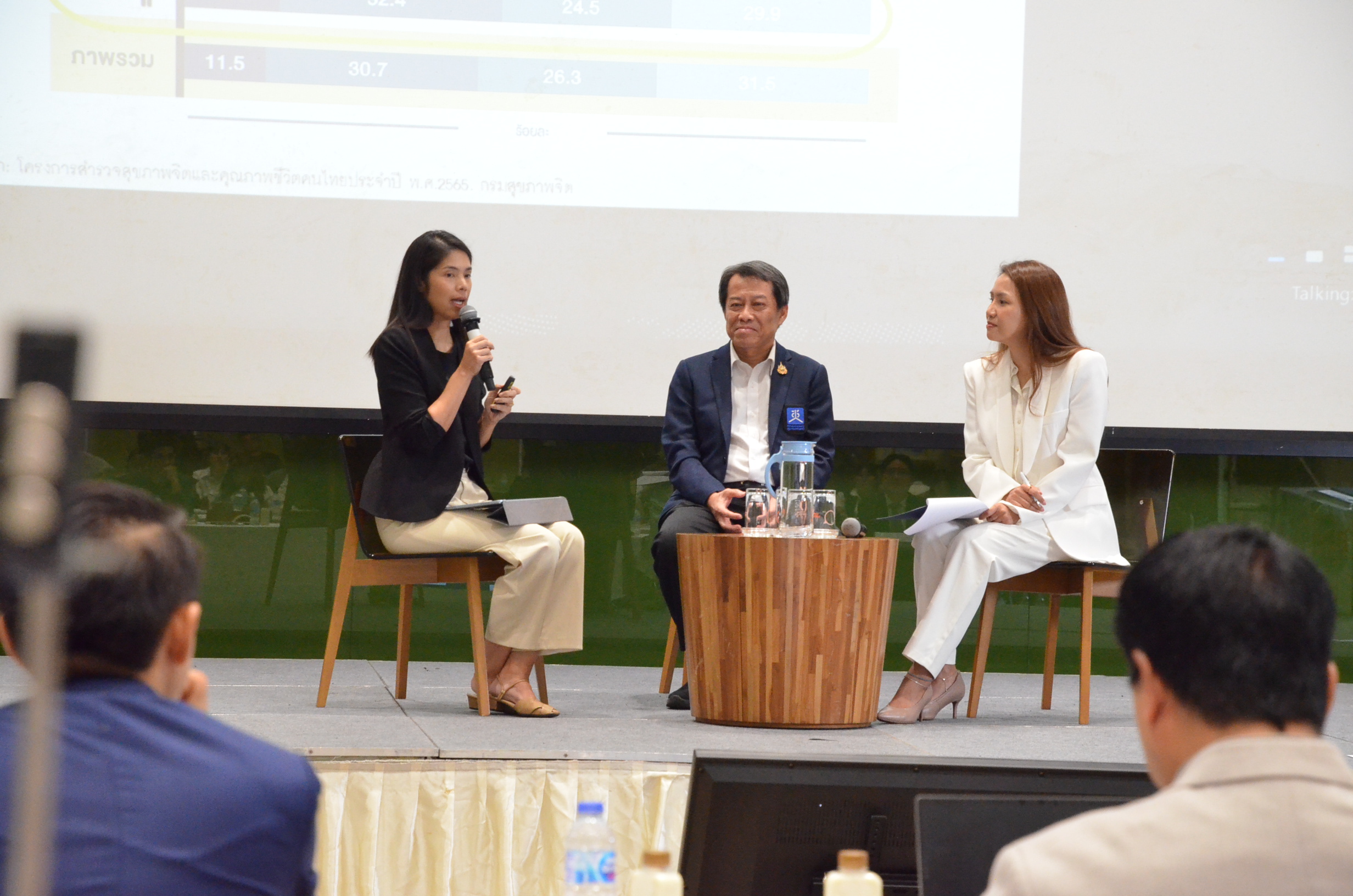 - 10 หมวดตัวชี้วัด “สุขภาพจิตคนไทย” นำเสนอโดย รศ. ดร.มนสิการ กาญจนะจิตรา สถาบันวิจัยประชากรและสังคม ร่วมแลกเปลี่ยนมุมมองโดย นายสุทธิพงษ์ วสุโสภาพล รองเลขาธิการ คณะกรรมการสุขภาพแห่งชาติ (สช.) โดยมี ผศ. ดร.นุชราภรณ์ เลี้ยงรื่นรมย์ สถาบันวิจัยประชากรและสังคม เป็นผู้ดำเนินรายการ