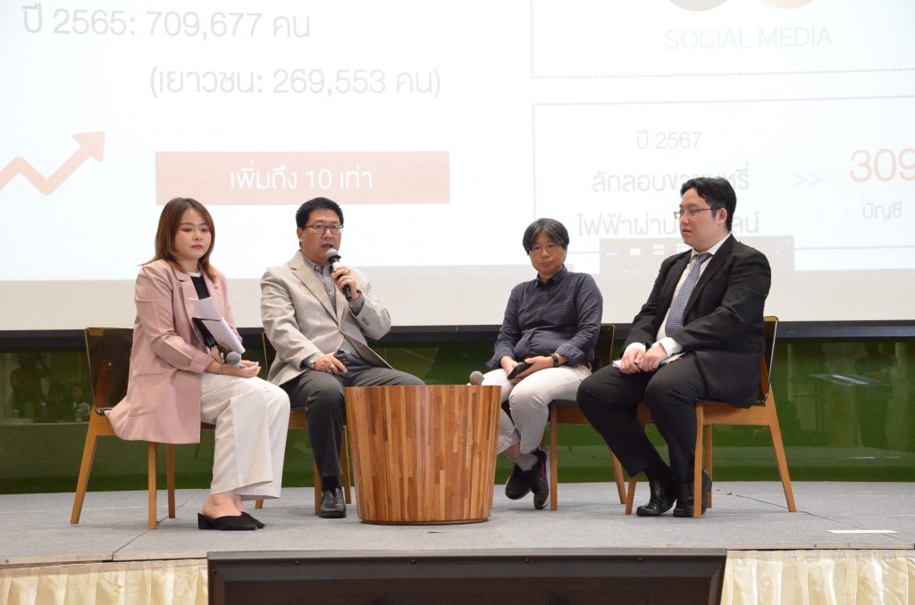 - 10 สถานการณ์เด่นทางสุขภาพ 2568 นำเสนอโดย ผศ. ดร.สักกรินทร์ นิยมศิลป์ สถาบันวิจัยประชากรและสังคม ร่วมแลกเปลี่ยนมุมมองโดย รศ.ดร.พญ.เริงฤดี ปธานวนิช มูลนิธิรณรงค์เพื่อการไม่สูบบุหรี่ และคุณวราวิชญ์ โปตระนันทน์ นักวิจัย สถาบันวิจัยเพื่อการพัฒนาประเทศไทย (ทีดีอาร์ไอ) โดยมี คุณวราวรรณ ฐาปนธรรมชัย สถาบันวิจัยประชากรและสังคม เป็นผู้ดำเนินรายการ