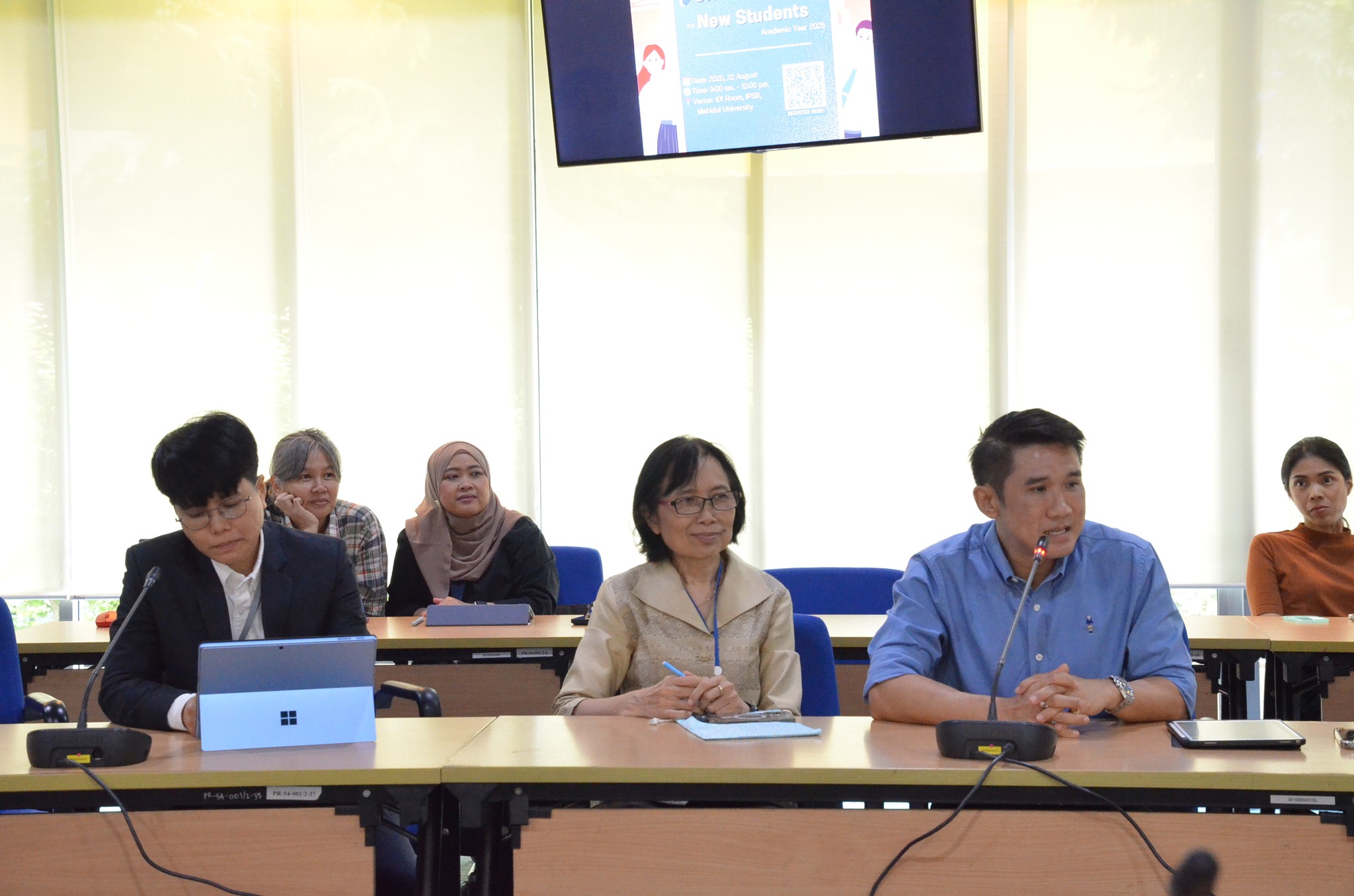 วันที่ 22 สิงหาคม 2568 รองศาสตราจารย์ ดร.เฉลิมพล แจ่มจันทร์ ผู้อำนวยการสถาบันวิจัยประชากรและสังคม มหาวิทยาลัยมหิดล พร้อมด้วยคณะผู้บริหาร ประธานหลักสูตร คณาจารย์ และบุคลากร ให้การต้อนรับนักศึกษาใหม่ 4 หลักสูตรฯ จำนวน 17 คน ได้แก่ ปรัชญาดุษฎีบัณฑิต สาขาวิชาประชากรศาสตร์ประยุกต์และการวิจัยทางสังคม (หลักสูตรนานาชาติ) จำนวน 6 คน, ปรัชญาดุษฎีบัณฑิต สาขาวิชาวิจัยประชากรและสังคม (หลักสูตรไทย) จำนวน 2 คน, ศิลปศาสตรมหาบัณฑิต สาขาวิชาประชากรและสุขภาพทางเพศและอนามัยเจริญพันธุ์ (หลักสูตรนานาชาติ) จำนวน 6 คน, ศิลปศาสตรมหาบัณฑิต สาขาวิชาวิจัยประชากรและสังคม (หลักสูตรไทย) จำนวน 3 คน ในงานปฐมนิเทศนักศึกษาใหม่ประจำปีการศึกษา 2568 ณ ห้องประชุมประชาสังคมอุดมพัฒน์ (101) ชั้น 1 สถาบันวิจัยประชากรและสังคม มหาวิทยาลัยมหิดล