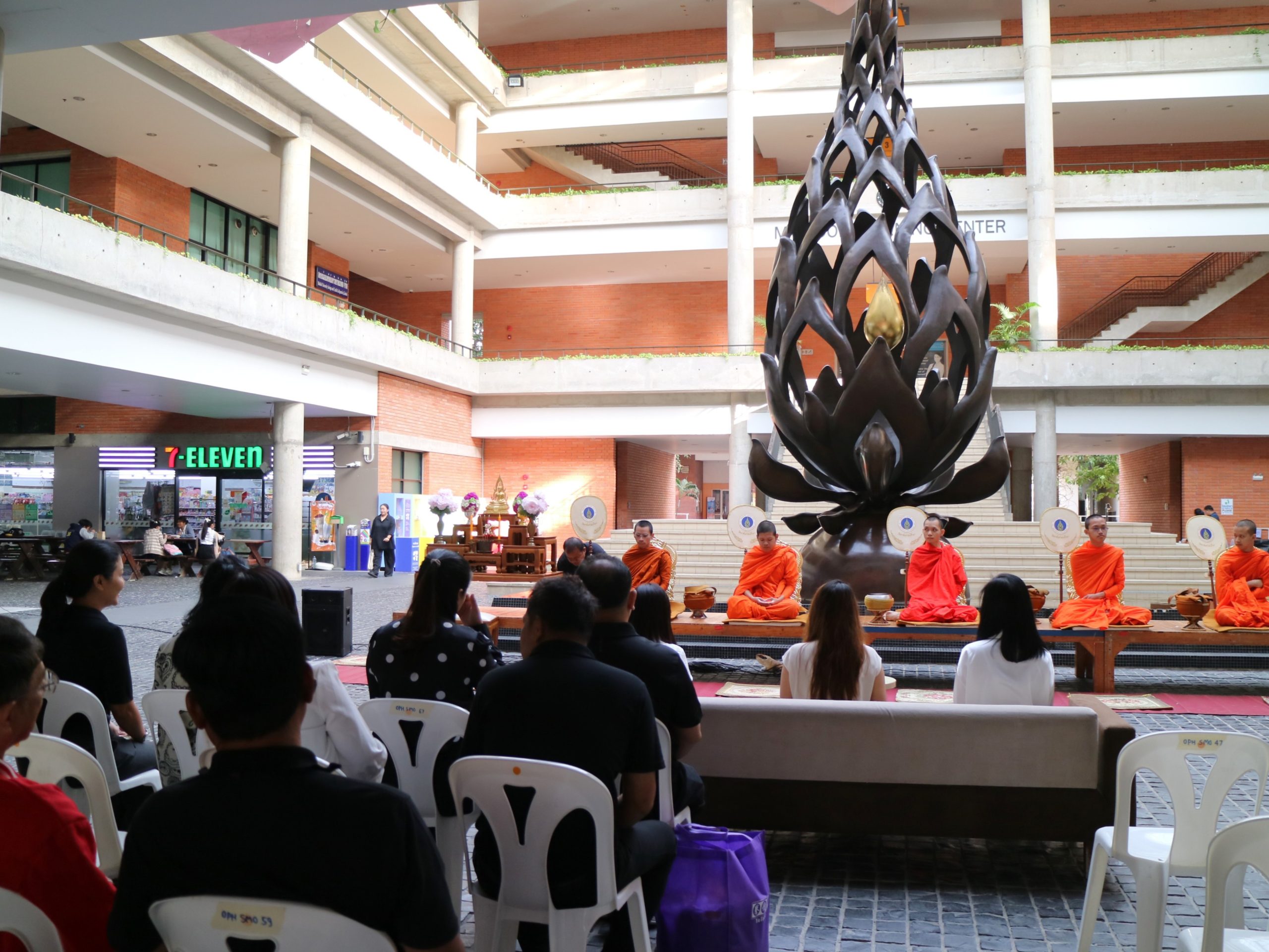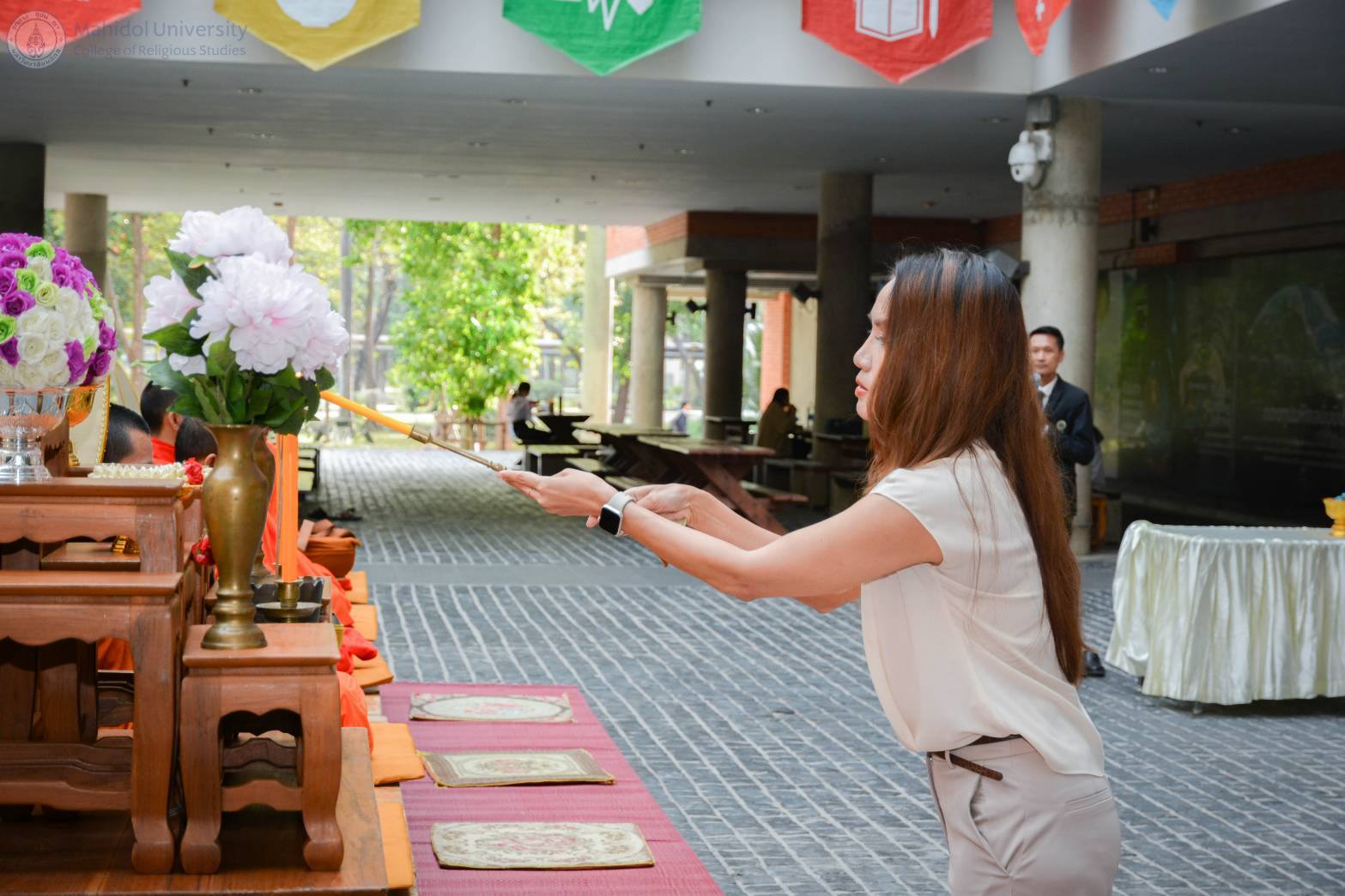 ภายในงาน ผู้บริหารและบุคลากรของสถาบันฯ ร่วมกันตักบาตร ถวายปัจจัย และรับฟังบรรยายธรรม เพื่อความเป็นสิริมงคล พร้อมกันนี้ สถาบันฯ ยังได้รับมอบของที่ระลึกจาก ผศ.ดร.สุทธพร รัตนกุล อาจารย์ประจำวิทยาลัยศาสนศึกษา ณ ลานประติมากรรมดอกกันภัย อาคารศูนย์การเรียนรู้ มหาวิทยาลัยมหิดล