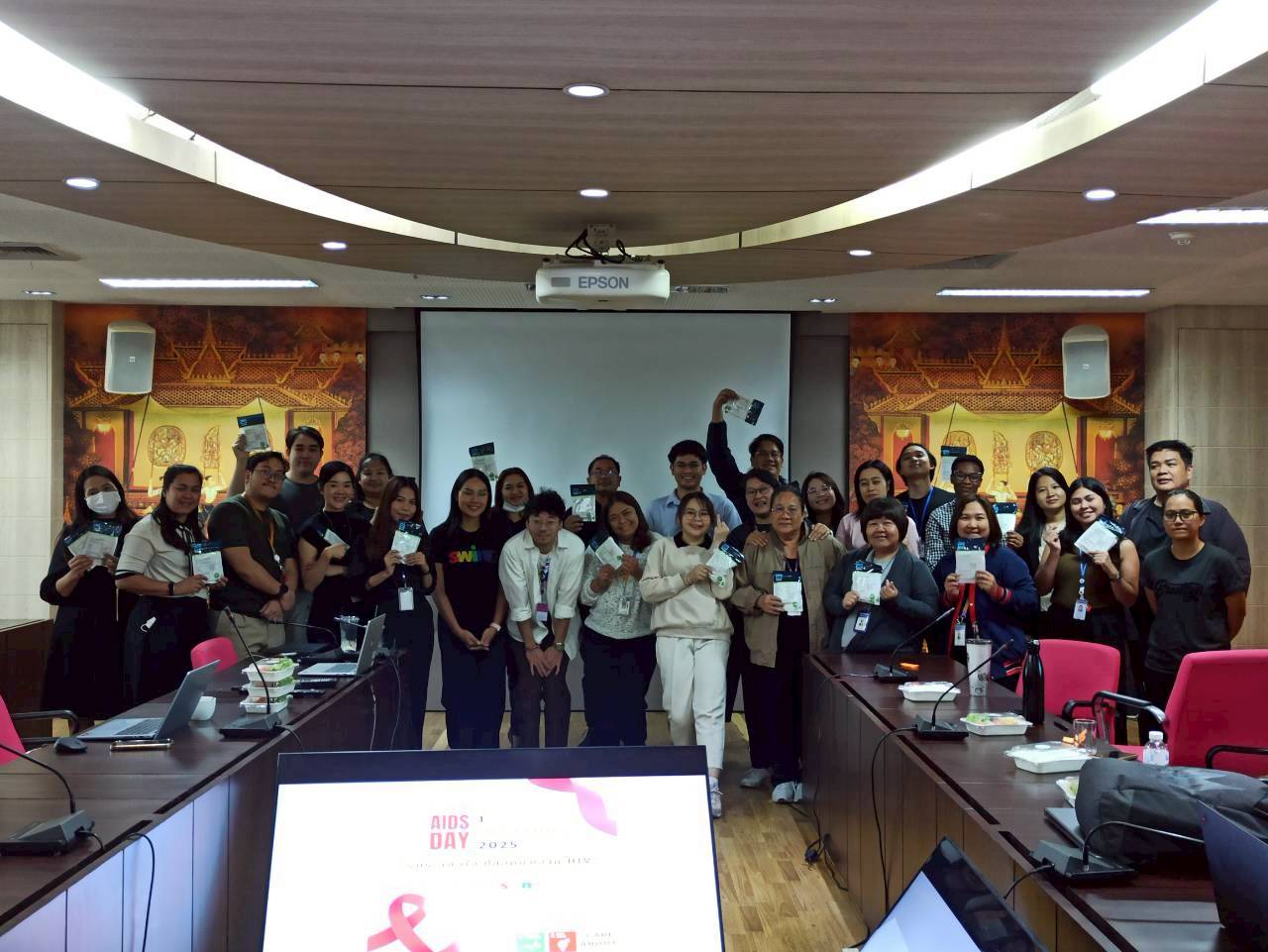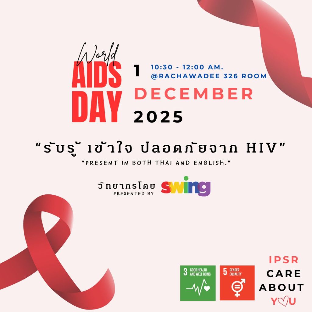 เมื่อวันที่ 1 ธันวาคม 2568 สถาบันวิจัยประชากรและสังคม มหาวิทยาลัยมหิดล ร่วมกับมูลนิธิเพื่อนพนักงานบริการ (SWING) จัดกิจกรรม “รับรู้ เข้าใจ ปลอดภัยจาก HIV” เนื่องในวันเอดส์โลก (World AIDS Day) ซึ่งตรงกับวันที่ 1 ธันวาคมของทุกปี โดยได้รับเกียรติจากวิทยากร ได้แก่ อานนท์ เทพบินการ อรรถกร สมแวง และอดิเรก เรือนปิน จากมูลนิธิ SWING ร่วมให้ความรู้เกี่ยวกับโรคเอดส์ การป้องกันการติดเชื้อ HIV และการดูแลตนเองอย่างถูกต้อง พร้อมสาธิตการใช้ชุดตรวจ HIV แบบตรวจได้ด้วยตนเอง (HIV Self-test Kit) เพื่อให้ผู้เข้าร่วมกิจกรรม (คณาจารย์ บุคลากร และนักศึกษา) สามารถนำไปประยุกต์ใช้ในชีวิตประจำวันได้อย่างถูกต้องและปลอดภัย