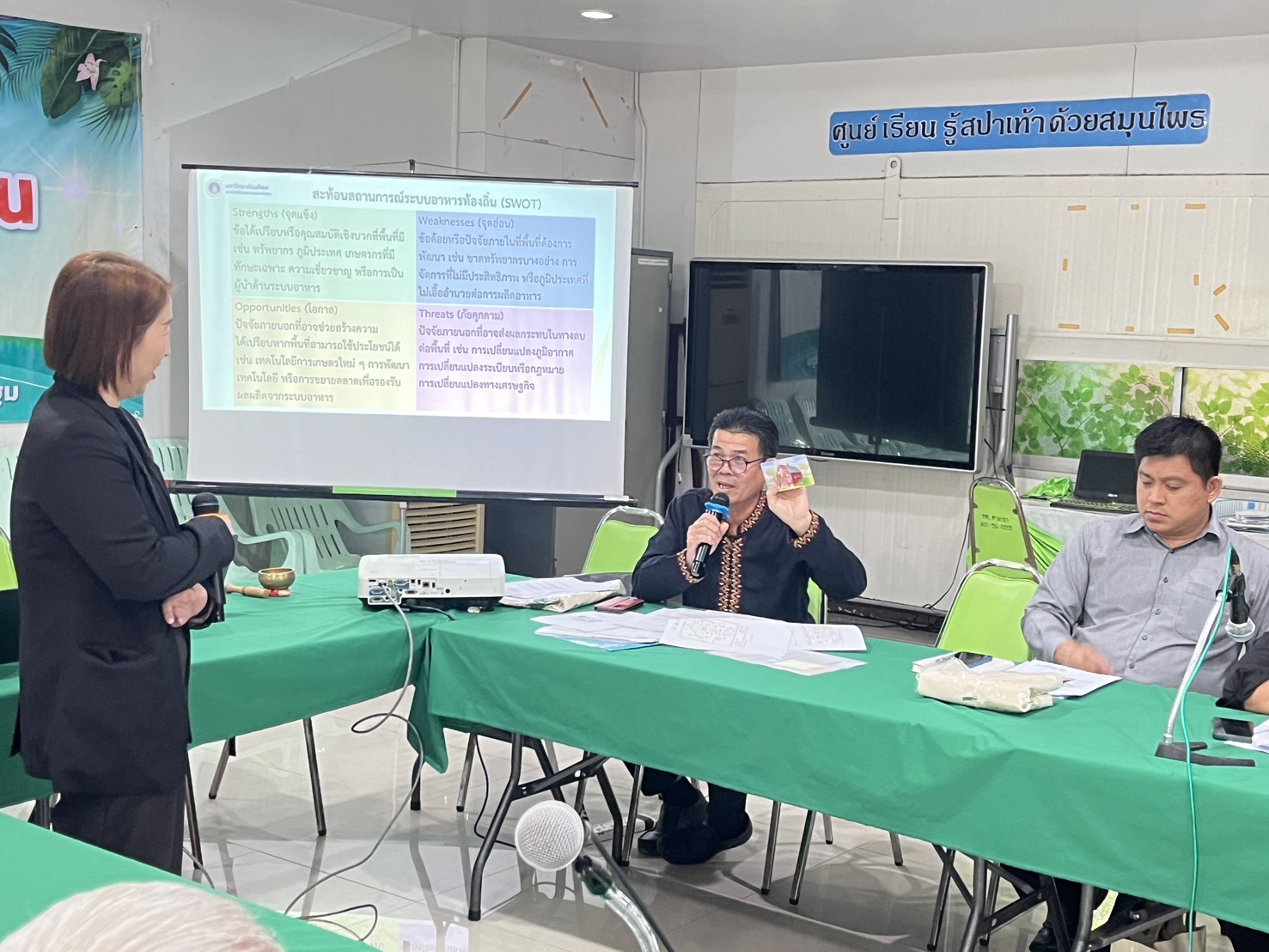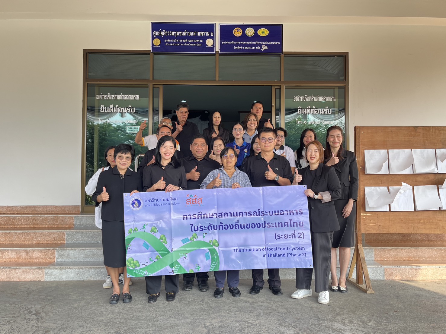 ระหว่างวันที่ 20–21 มกราคม 2569 โครงการงานวิจัย “โครงการระบบอาหารของท้องถิ่นในประเทศไทย ระยะที่ 2” ซึ่งได้รับการสนับสนุนจากสำนักงานกองทุนสนับสนุนการสร้างเสริมสุขภาพ (สสส.) เพื่อเสริมสร้างความเข้มแข็งของระบบอาหารในระดับพื้นที่ โดยมี รองศาสตราจารย์ ดร.จงจิตต์ ฤทธิรงค์ รองผู้อำนวยการฝ่ายวิจัย และในฐานะหัวหน้าโครงการ ร่วมด้วยทีมวิจัย ได้แก่ อาจารย์ ดร.ภัทราภรณ์ จึงเลิศศิริ และ นางสาวพิมลพรรณ นิตย์นรา