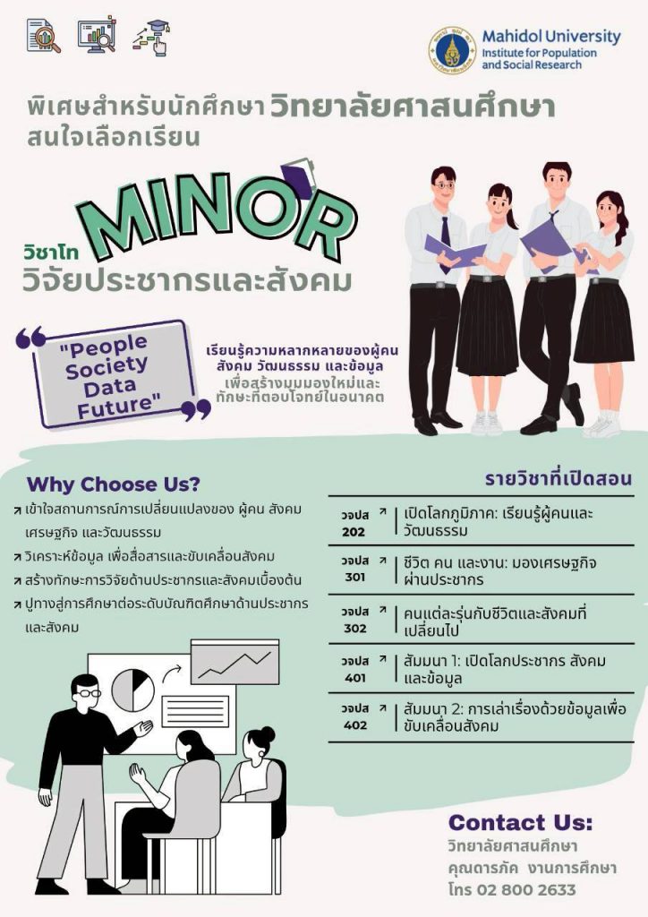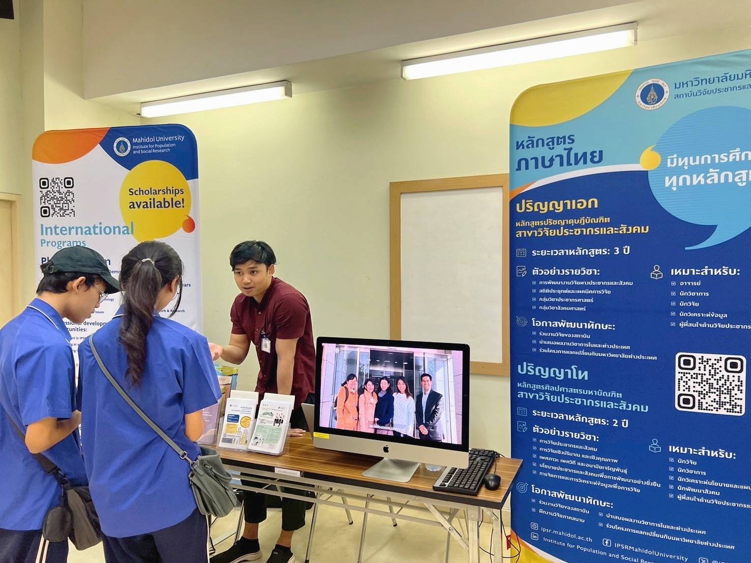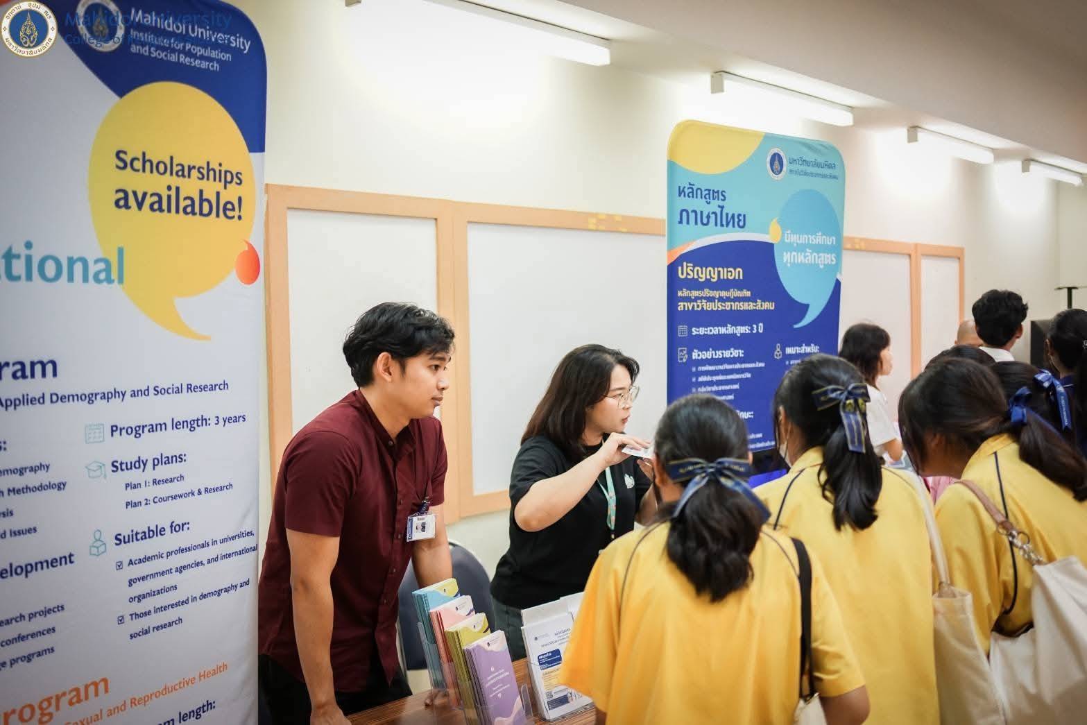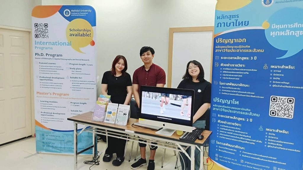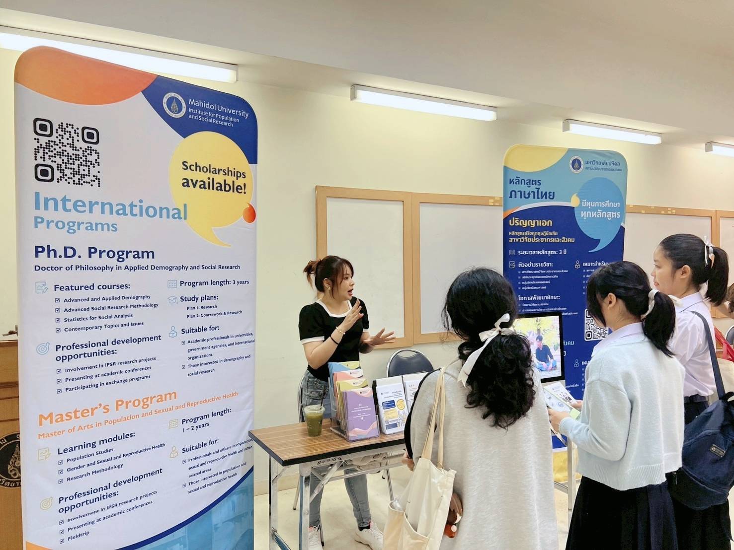 On September 6–7, 2025, the Institute for Population and Social Research (IPSR), Mahidol University, represented by the Education Administration team, participated in the program promotion activities for the graduate programs and the undergraduate minor program in Population and Social Research, in collaboration with the College of Religious Studies, at the “Mahidol Academic Open House 2025” held at the College of Religious Studies, Mahidol University.