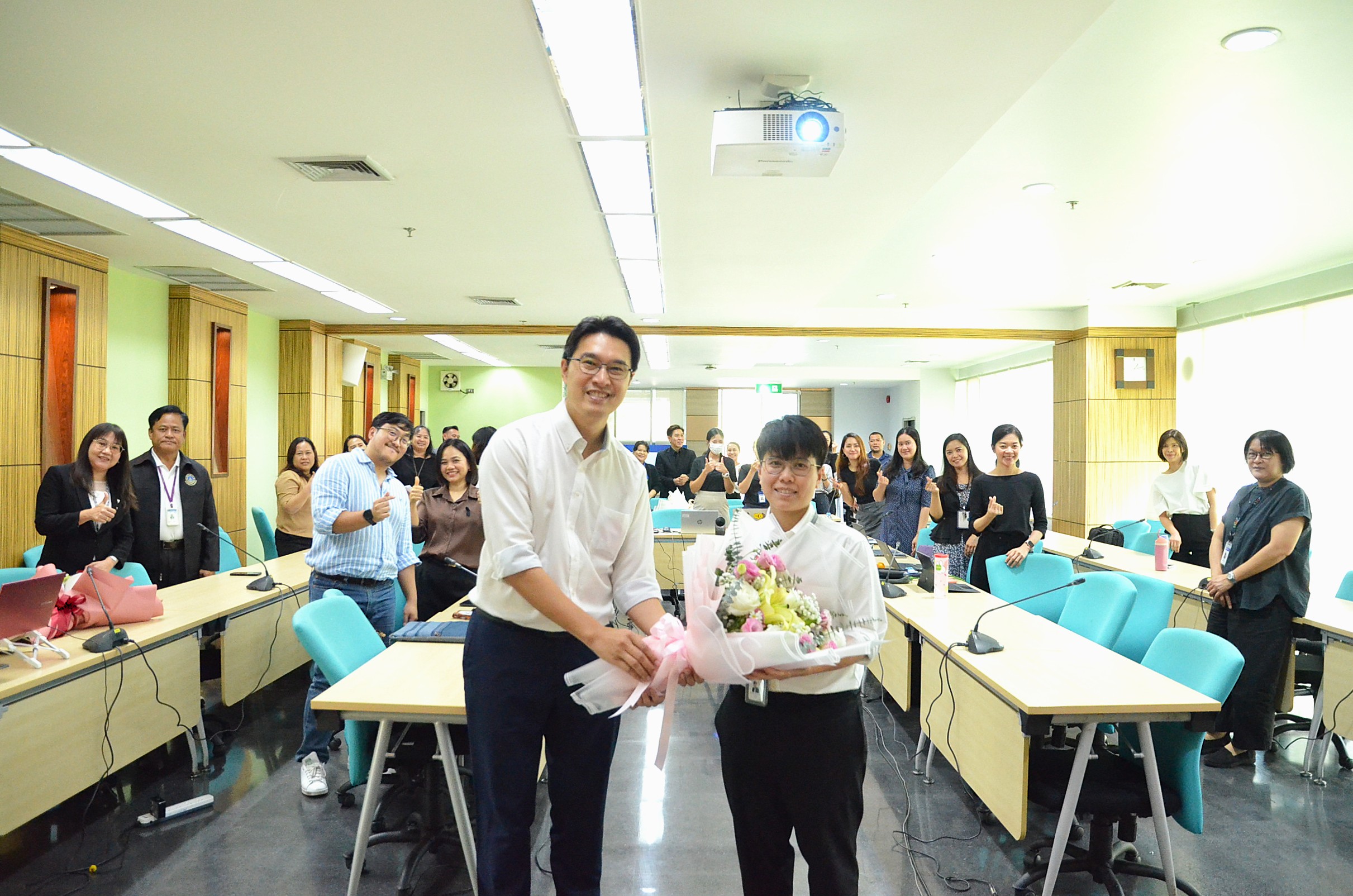 วันที่ 23 มกราคม 2569 รองศาสตราจารย์ ดร.เฉลิมพล แจ่มจันทร์ ผู้อำนวยการสถาบันวิจัยประชากรและสังคม ม.มหิดล มอบช่อดอกไม้เพื่อแสดงความยินดีแด่คณาจารย์ที่ได้รับการยกย่องและมีผลงานความสำเร็จ ในประชุมคณะกรรมการกิจกรรมสถาบันฯ ครั้งที่ 117 (1/2569) ดังนี้