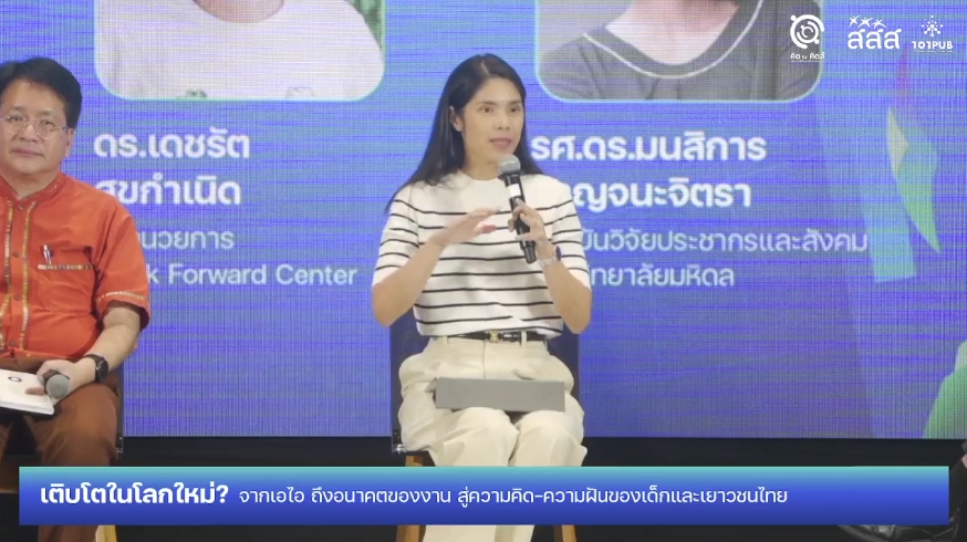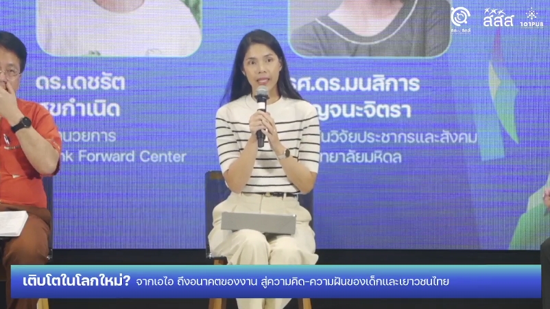 The forum was moderated by Mr. Woradon Lertrat, Researcher and Head of the 101 PUB Research & Policy Network, and held in Room 201, Healthy Space Learning Center, Thai Health Promotion Foundation (ThaiHealth). The event was also broadcast live via the Kid for Kids, ThaiHealth, 101 PUB, and The101.world Facebook pages, and is available for replay (within 30 days) at https://www.facebook.com/share/v/1Yxx7FvSHt/