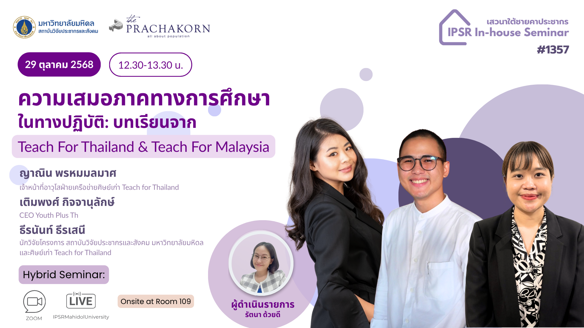 Speaker: คุณญาณิน พรหมมลมาศ (เจ้าหน้าที่อาวุโสฝ่ายเครือข่ายศิษย์เก่า Teach for Thailand ) คุณเติมพงศ์ กิจจานุลักษ์ (CEO Youth Plus TH) และคุณธีรนันท์ ธีรเสนี (นักวิจัยโครงการ สถาบันวิจัยประชากรและสังคม มหาวิทยาลัยมหิดล และศิษย์เก่า Teach for Thailand)