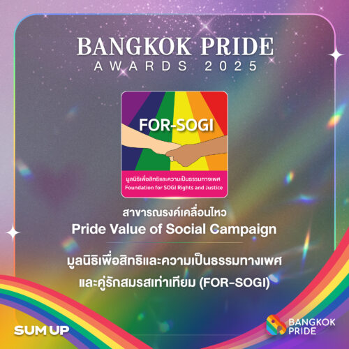 ขอแสดงความยินดีกับ ผู้ได้รับรางวัลจากงาน Bangkok Pride Award 2025 ในหมวด Bangkok Pride Value ซึ่งมีผู้ได้รับรางวัล 5 สาขา 15 รางวัล สำหรับสาขารณรงค์เคลื่อนไหว รางวัล Pride Value of Social Campaign ผู้ได้รับรางวัลจากคะแนนโหวตทั่วโลก ได้แก่มูลนิธิเพื่อสิทธิและความเป็นธรรมทางเพศ จากการร่วมขับเคลื่อนพระราชบัญญัติสมรสเท่าเทียม พ.ศ. 2567 โดยมี ผู้ช่วยศาสตราจารย์ ดร.กนกวรรณ ธราวรรณ อาจารย์ประจำสถาบันวิจัยประชากรและสังคม มหาวิทยาลัยมหิดล และในฐานะประธานมูลนิธิ เป็นตัวแทนขึ้นรับรางวัล จากรัฐมนตรีช่วยว่าการกระทรวงมหาดไทย นางสาวธีรรัตน์ สำเร็จวาณิชย์ เมื่อวันที่ 31 พฤษภาคม 2568 ติดตามรายละเอียดเพิ่มเติมได้ที่เพจ กรมส่งเสริมวัฒนธรรม: https://www.facebook.com/share/1AK5B5AbhM/