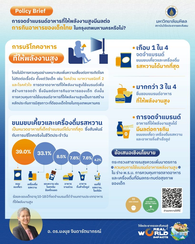 • การจดจำแบรนด์อาหารที่ให้พลังงานสูง มีผลต่อการกินอาหารของเด็กไทยในกรุงเทพมหานครหรือไม่