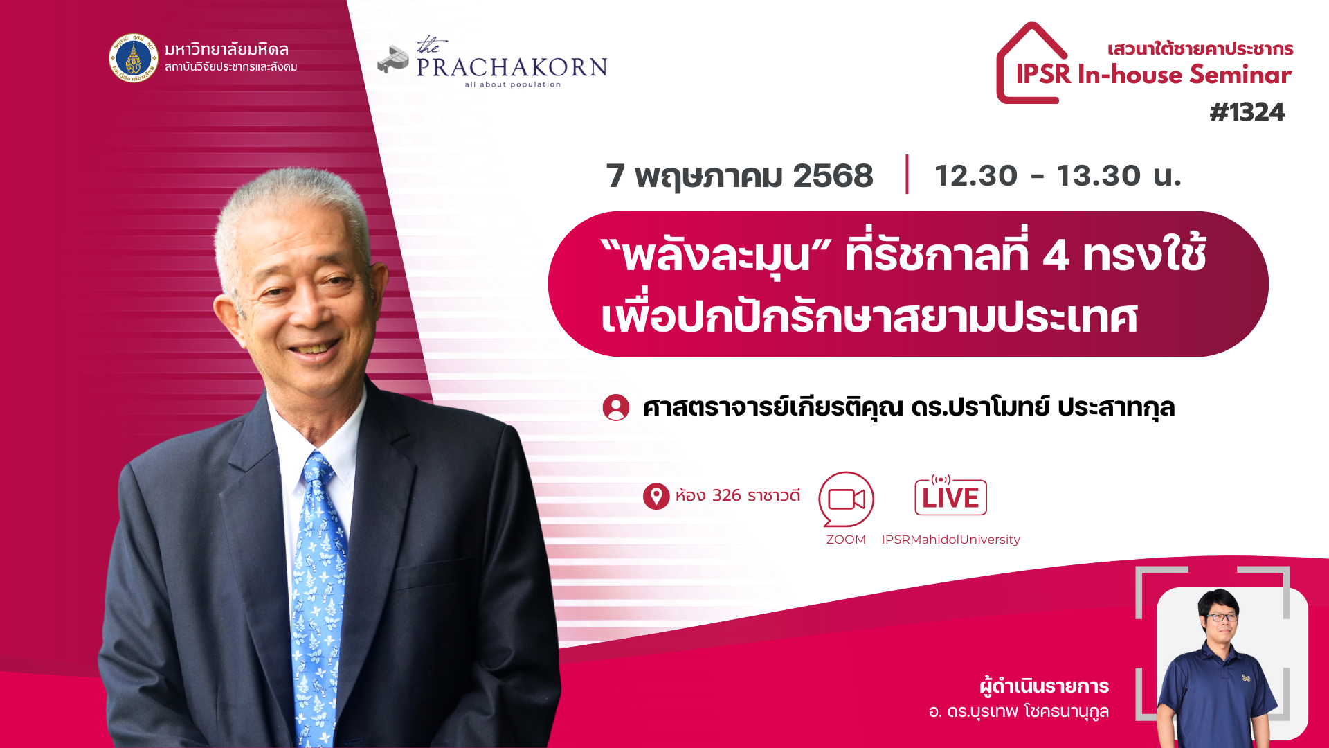 Facebook Live: https://www.facebook.com/IPSRMahidolUniversity