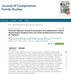 Parental Absence, Family Environment, and Adolescents’ School Performance: Evidence from the Three Southernmost Provinces of Thailand 23 เมษายน 2568 บทความตีพิมพ์ในวารสาร